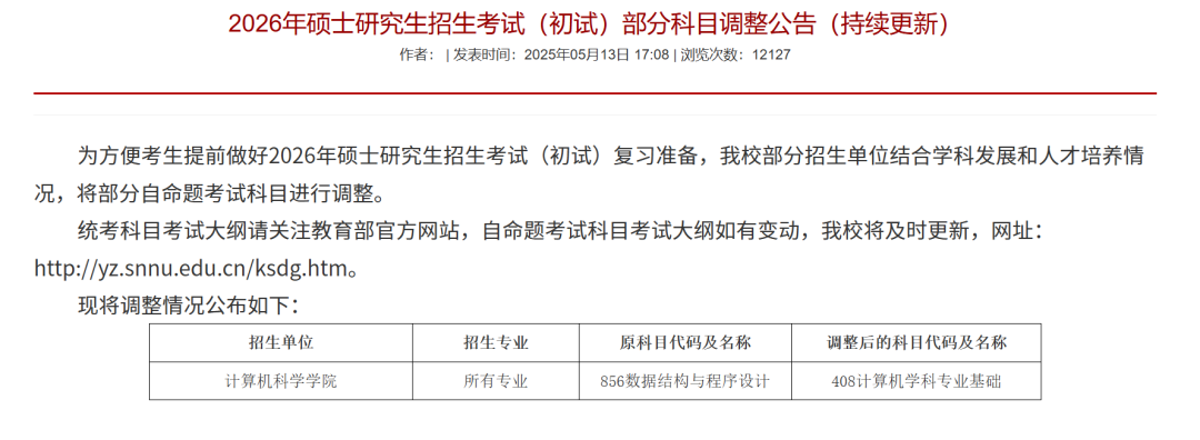 计算机科学学院所有专业,原856数据结构与程序设计调整为408计算机专业基础。