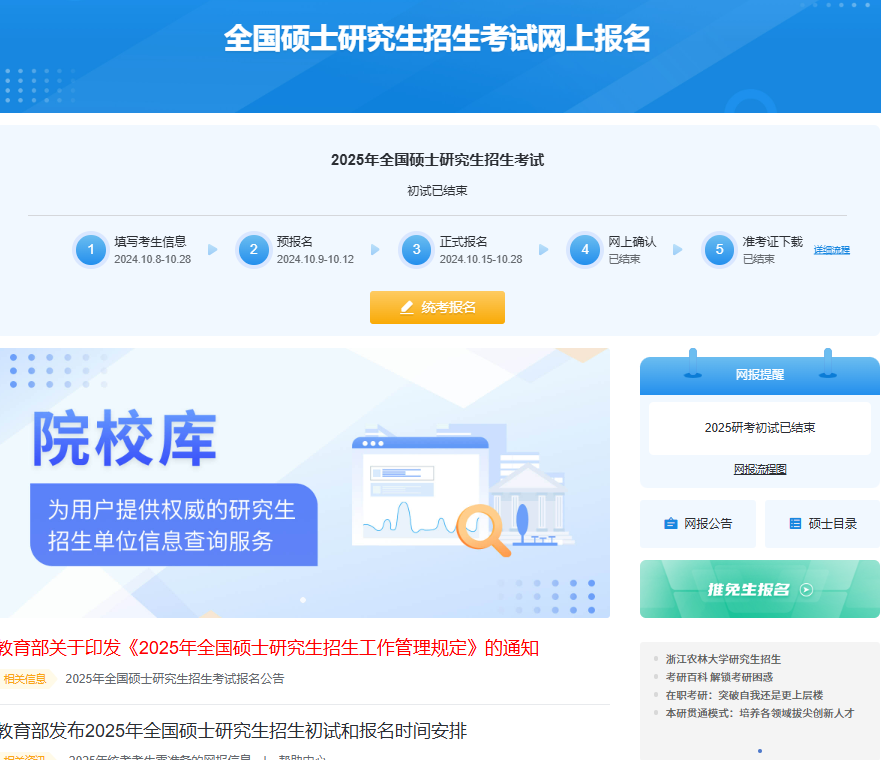 目标院校研究生院官网(*关键):招生简章、专业目录、参考书目、复试大纲、导师信息等官方信息均在此发布。