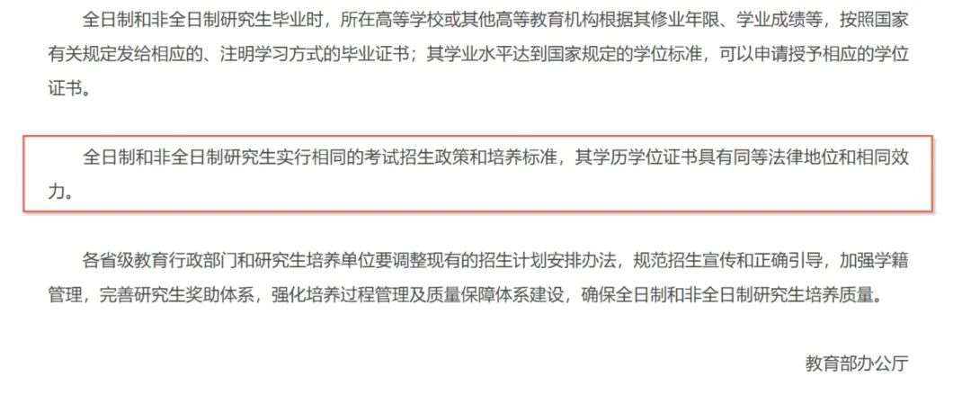 根据2016年教育部发布的《关于统筹全日制和非全日制研究生管理工作的通知》,对两者的身份做出以下明确说明: