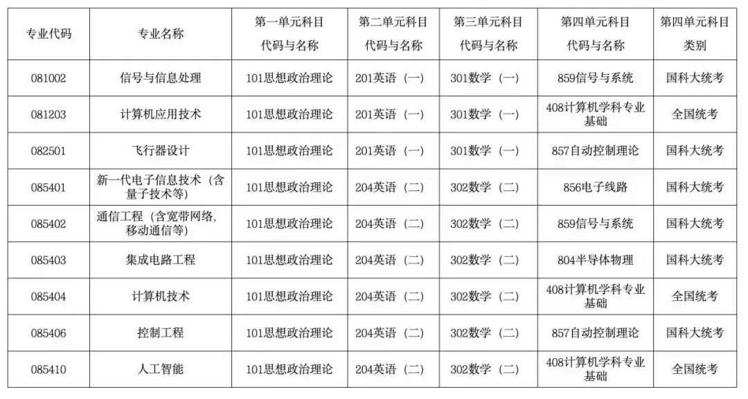 6.报考电子信息专业(专业代码085400),统考科目“201英语(一)”和“301数学(一)”调整为统考科目“204英语(二)”和“302数学(二)”。