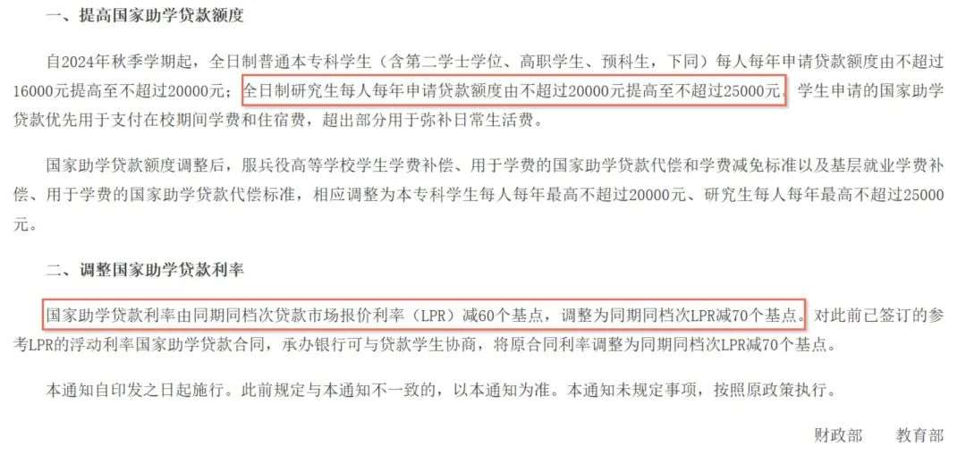国家助学贷款利率由同期同档次贷款市场报价利率(LPR)减60个基点,调整为同期同档次LPR减70个基点。对此前已签订的合同,承办银行可与贷款学生协商,将原合同利率调整为同期同档次LPR减70个基点。