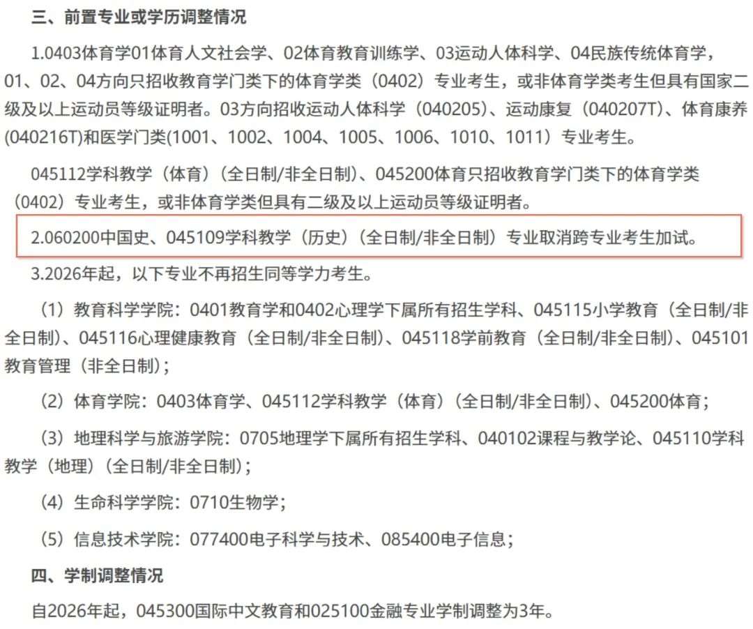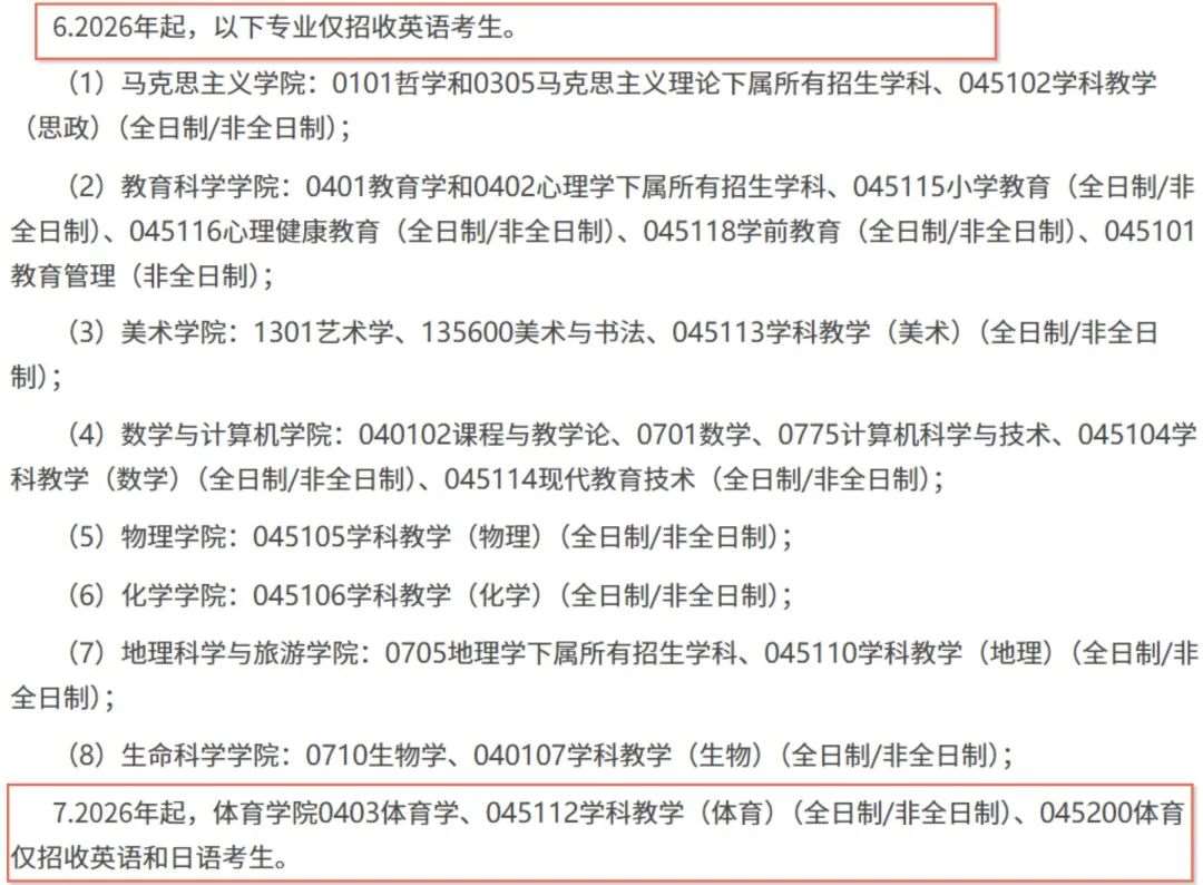另外,2026年起,体育学院体育学、教学(体育)(全日制/非全日制)、体育仅招收英语和日语考生。
