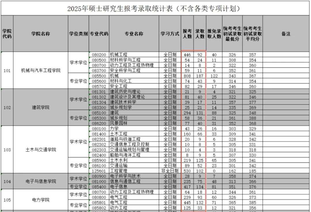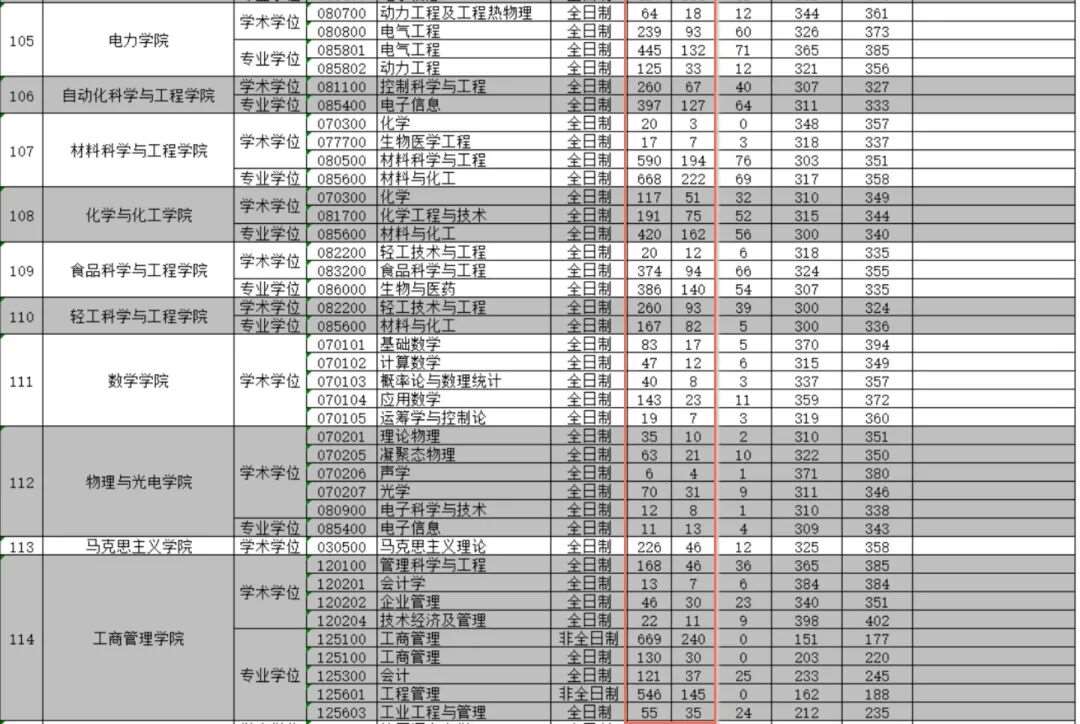 以华南理工大学080200机械工程为例。2025年报录比为446/(92-40),即8.57:1,统考*低分为326,平均分为357
