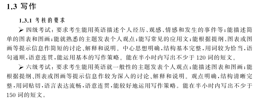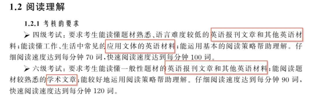 我们能看到,考纲里四六级的技能要求是不同的。我们看看其中的相同点(即重复语句):