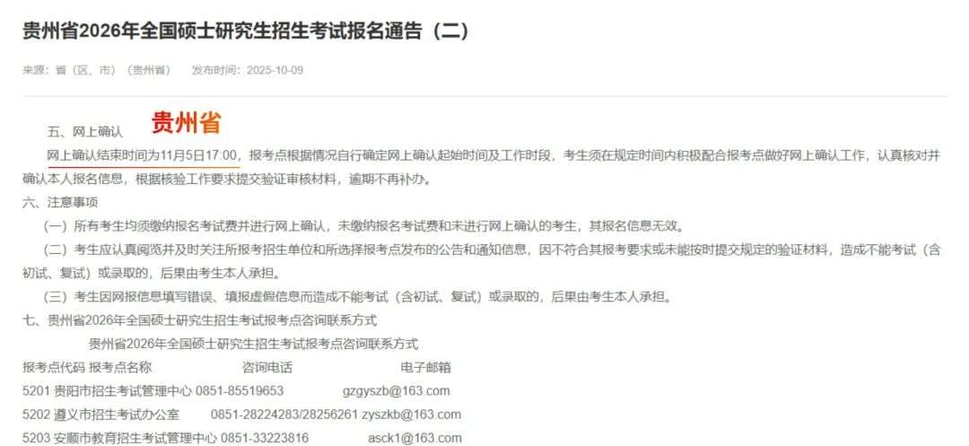 贵州省网上确认时间: 网上确认结束时间为11月5日17:00,报考点根据情况自行确定网上确认起始时间及工作时段。