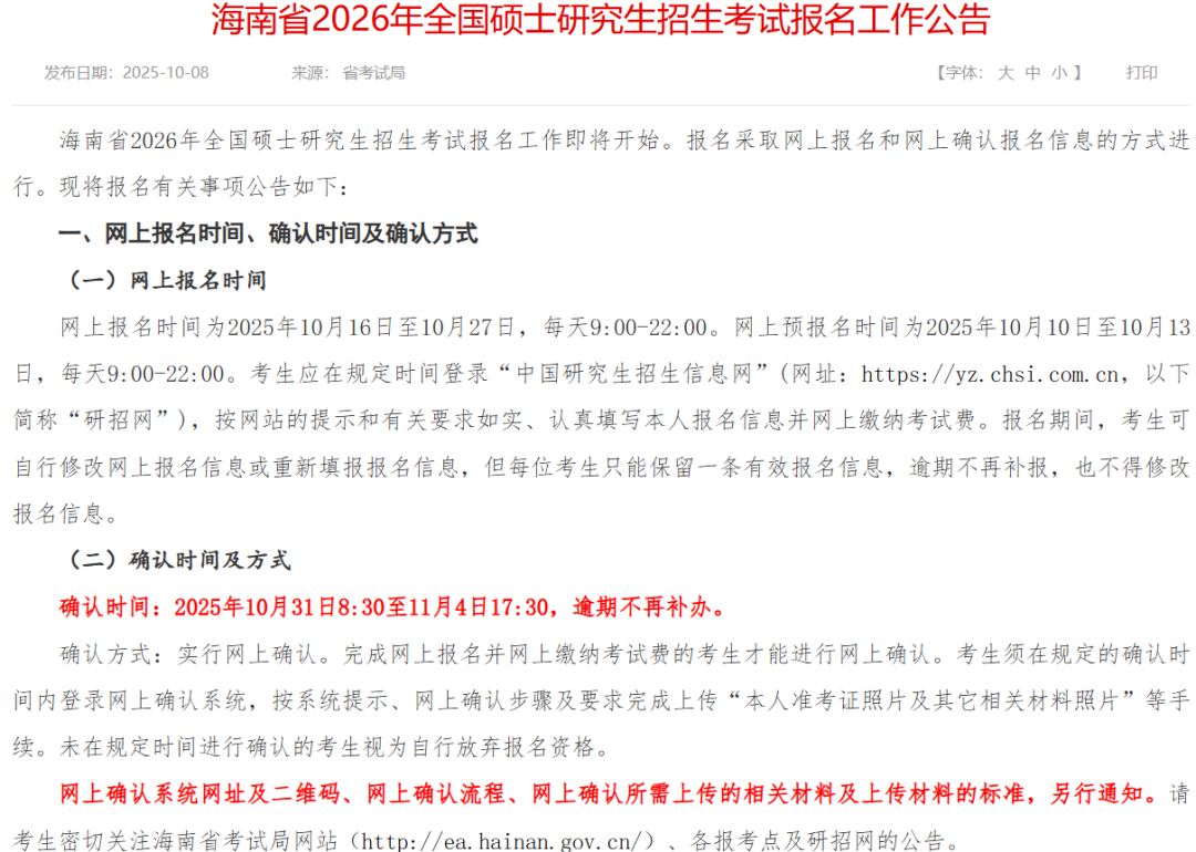 海南省网上确认时间:2025年10月31日8:30至11月4日17:30,逾期不再补办。