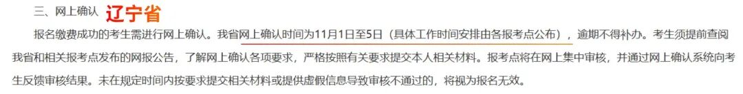 辽宁省网上确认时间:11月1日至5日(具体时间安排由各报考点公布)