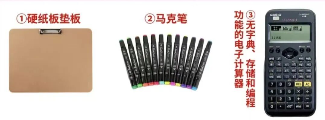 如果考点不备考试文具,那么大家需要自备考试用具,以下考试用品请大家这几天就用文具袋装起来,放到较为醒目的位置: