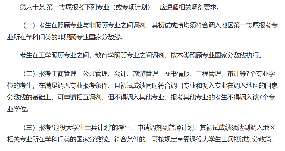 照顾专业调剂门槛整体提高:2026政策取消照顾专业调剂出同类专业的分数线优惠,要求无论照顾专业与非照顾专业之间如何调剂,均需达到非照顾专业国家线,这一调整提升了照顾专业调剂的学业水平要求。