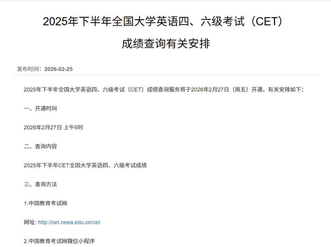 等待考研初试*的同时,大学生 英语四六级 也发布了*查询通知。