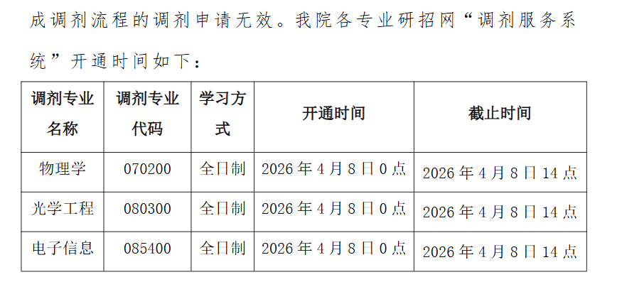 调剂系统开通时间:2026年4月8日00:00—4月8日12:00