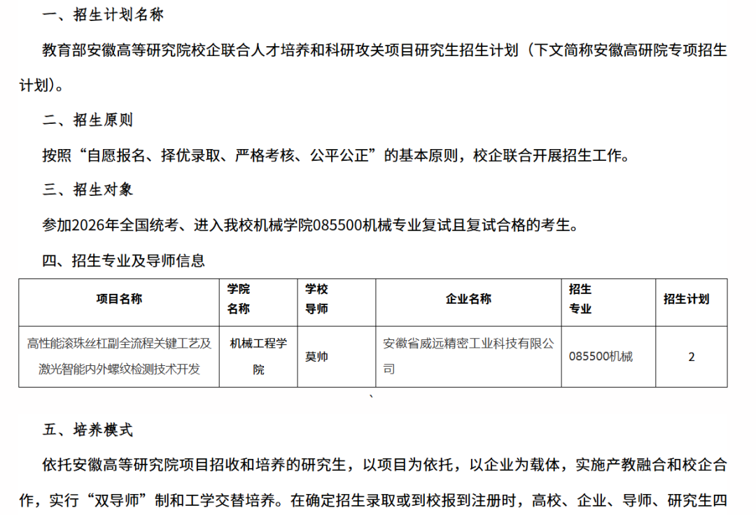 安徽高研院专项招生计划