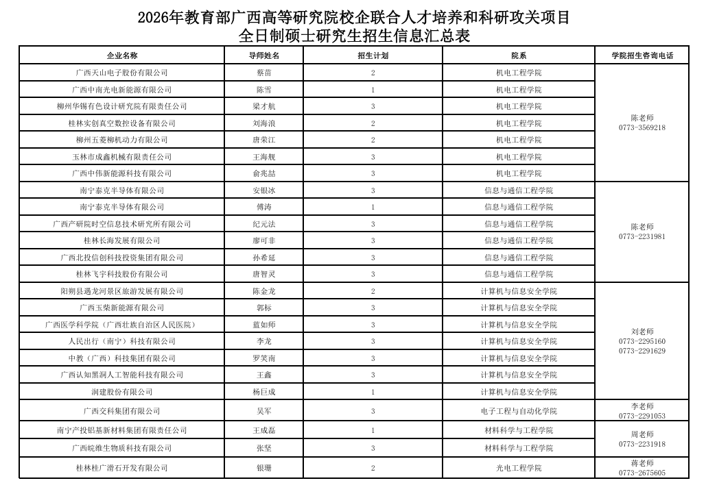 招生对象:参加2026年全国统考、进入广西大学机械学院085500机械专业复试且复试合格的考生