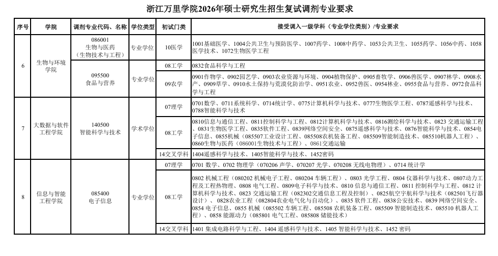 发布调剂专业及要求