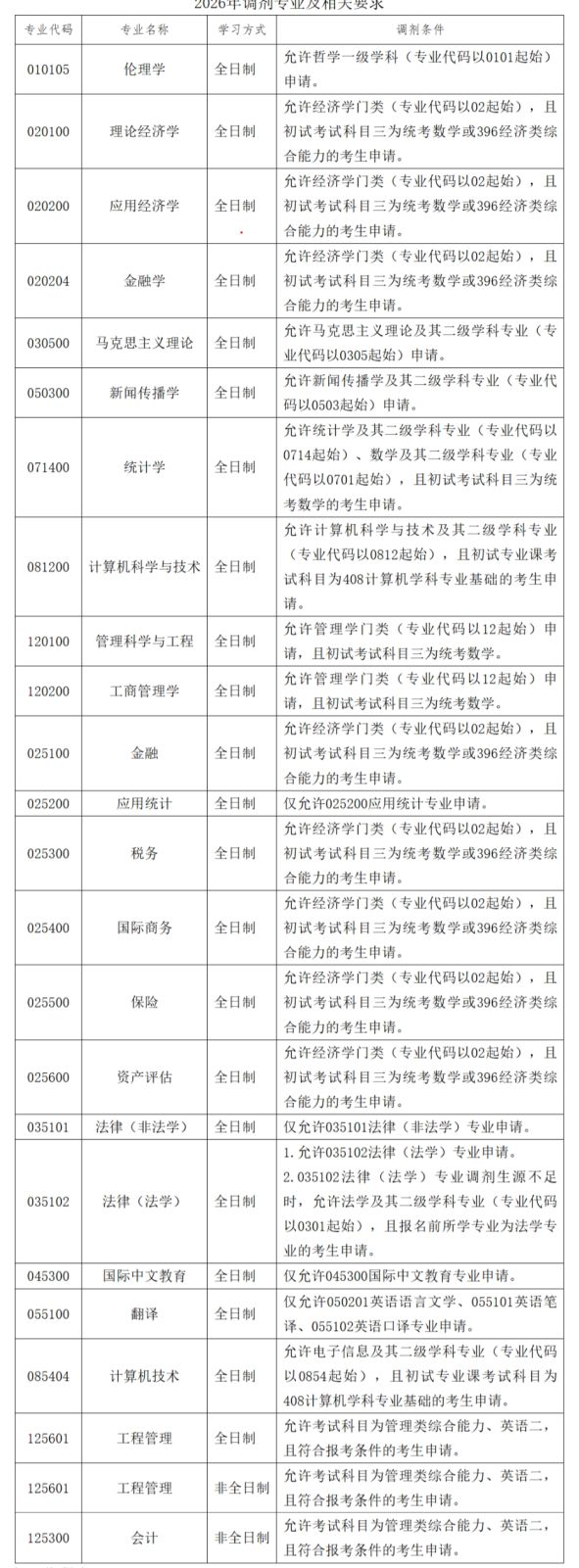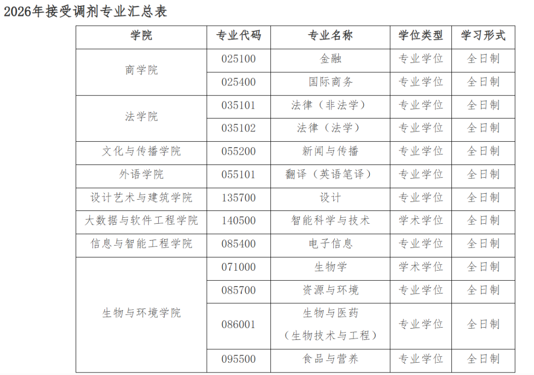 2026调剂接收专业仅13个,均为全日制