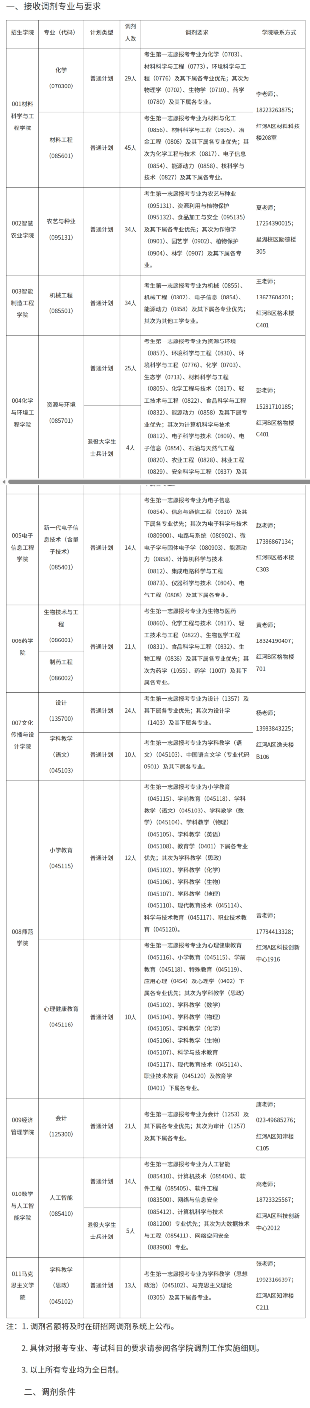 重庆文理学院(会开放二次调剂)发布调剂专业及要求。