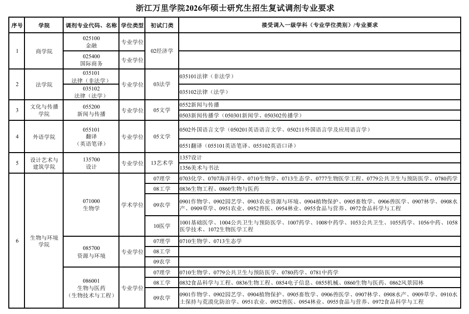 调剂要求:
